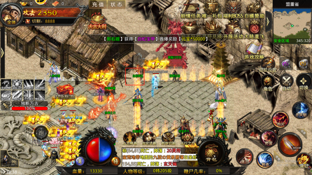 3、狂爆打金机制:独创“冰雪妖王”专属地图,小怪也能爆终极,装备回收秒换元宝,真正实现了散人玩家的打金梦想。