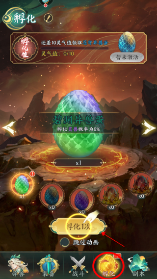 5、当获取到异兽蛋时,可点击进行孵化(获取获取同类异兽蛋可转化为升级材料)