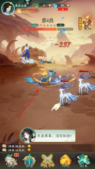 2、当成功击败敌人获取灵气时,点击异兽