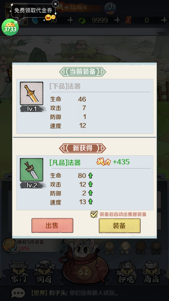 获得更加高阶的装备后,玩家可以替换掉原来低阶的装备,以提升自己的属性