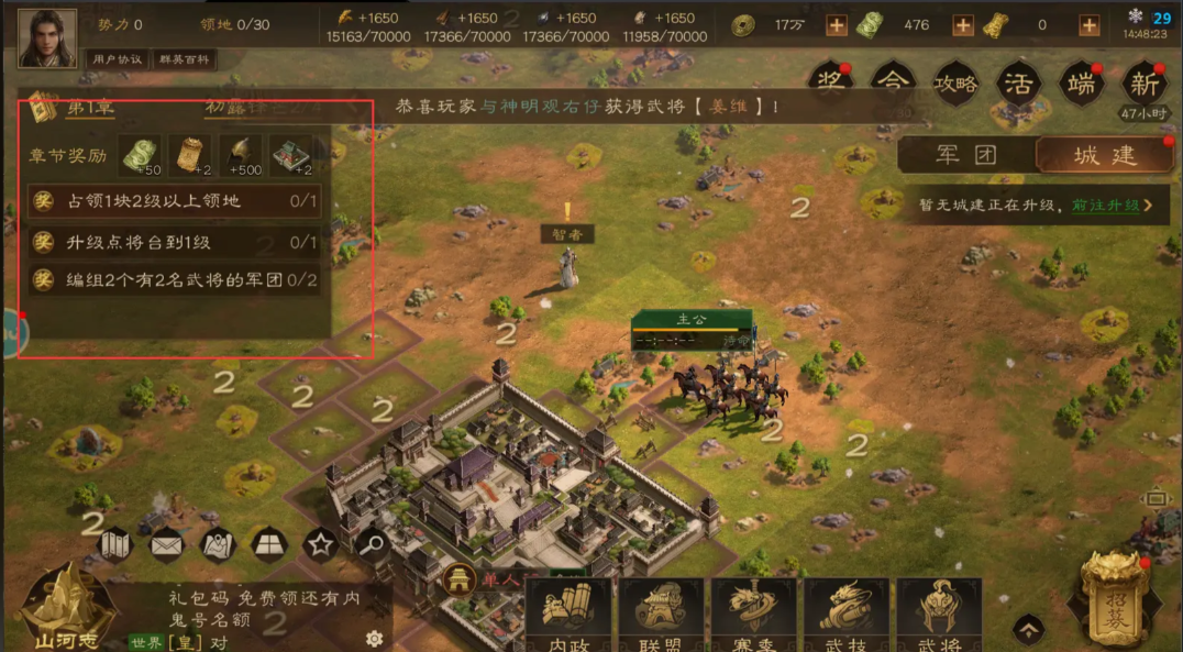 内城沙盘(山河志):专注内政经营,可改建为资源城、科技城、战备城,实现经济、兵种、防御的精细化发展1。