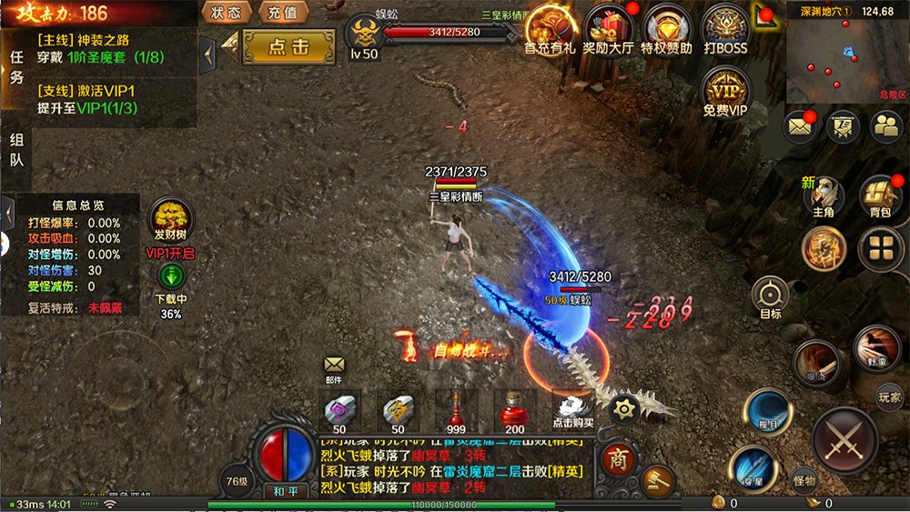 4、怪物爆率全面提升,所有装备均可通过打怪或击杀BOSS直接获得,高阶神装还能通过材料合成打造。真正做到“刀刀爆光柱,件件出极品”,是散人玩家的福音,更是打宝爱好者的终极乐园。