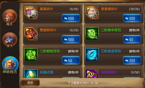 在这里可以购买到天赋材料、装备碎片等道具,神秘商店和黑市中有更多的高级资源等你来发现。