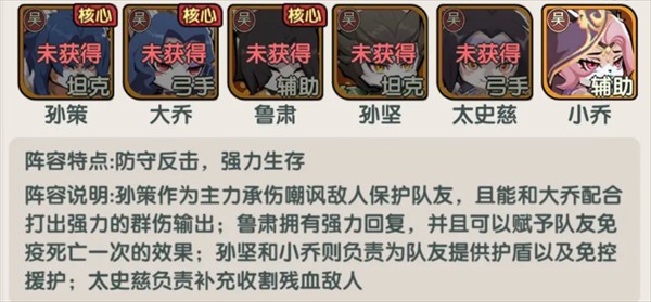 主养孙策,次选鲁肃。孙策可以进行强力反击,而鲁肃则提供恢复支持,形成有效的防守反击策略。