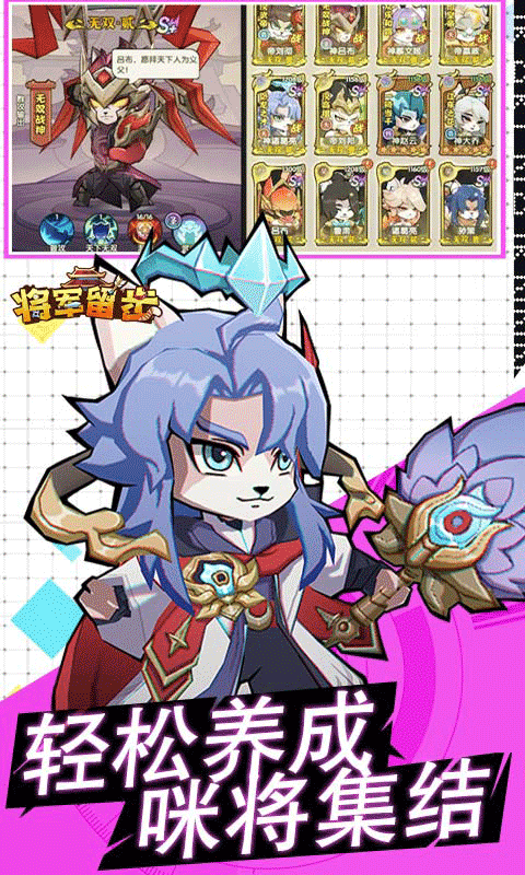 《将军留步》是一款以三国为背景的Q版猫猫形象策略卡牌手游,游戏内所有充值永久0.1折,玩家将扮演主公,招募如"赵云喵"、"关羽喵"、"吕布喵"等历史名将,组建强力阵容征战四方。游戏融合经典三国历史元素与萌系猫咪设定,打造了一个既保留历史韵味又充满趣味的平行世界,让玩家在轻松休闲的氛围中体验策略卡牌的深度乐趣。将军留步手游的玩法是经典的卡牌养成、对战玩法,也加入了运镖、跨服争霸、红颜等创新元素。对三国策略游戏感兴趣,有喜欢Q版形象的玩家不要错过了哦!