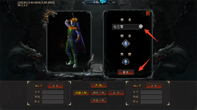 2、单职业传奇,只能改下姓名,确认后点击提交,进入游戏。