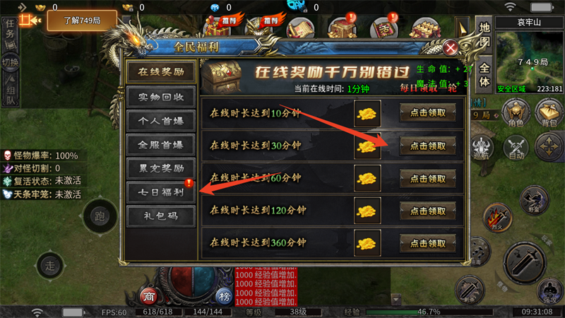 6、有在线奖励、七日签到等丰富内容,都是随便挂挂机、签签到就能轻松领取。
