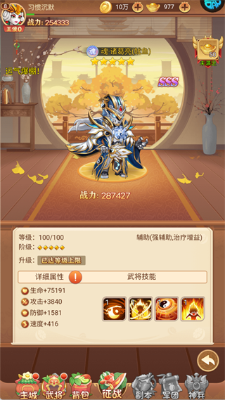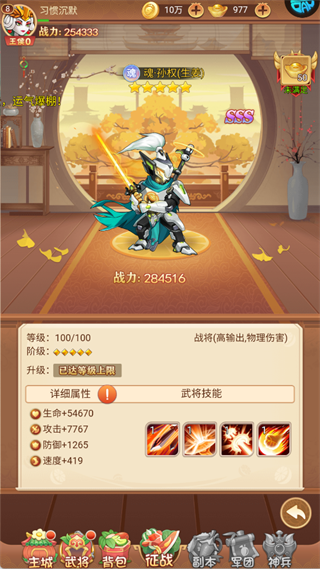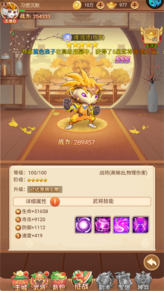速度:419 的属性,其武将技能以物理攻击为主