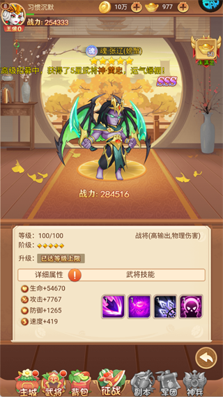 2、魂・张辽(经验):SSS 级武将