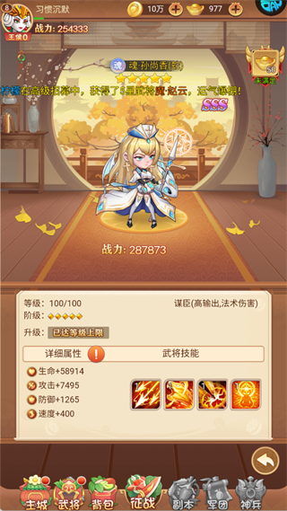 速度:400 的属性,其武将技能以法术攻击为主