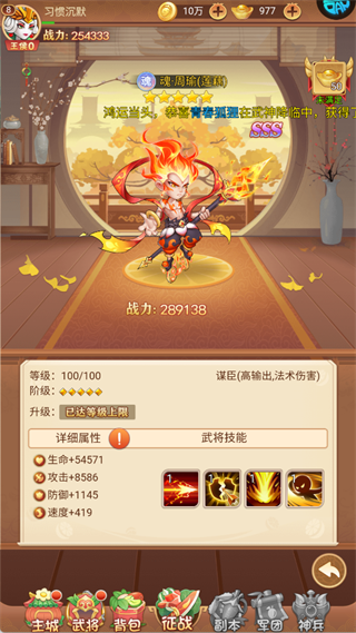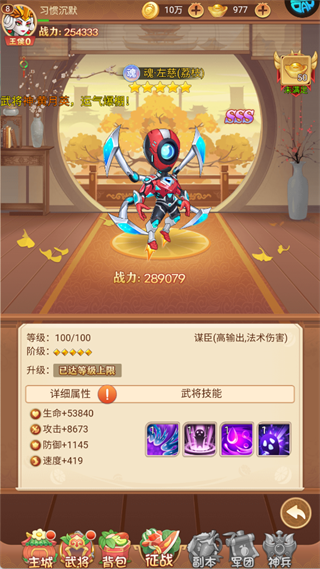 速度:419 的属性,其武将技能以法术攻击为主