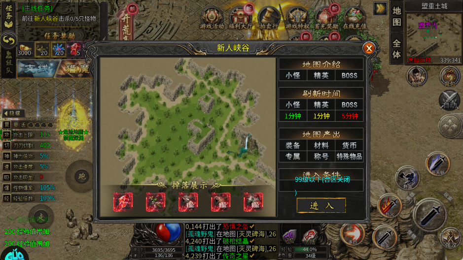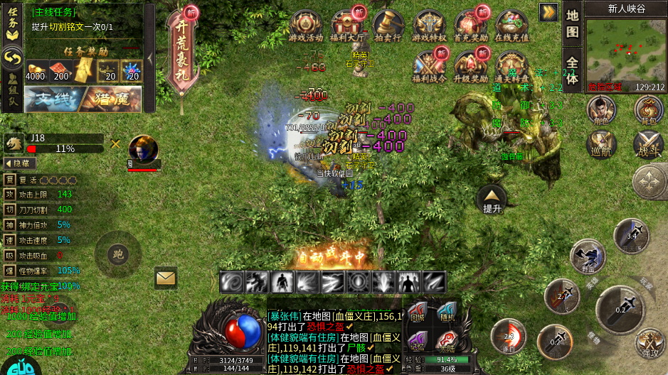 2.群体切割:上线即赠送群体切割技能,提升清怪效率。