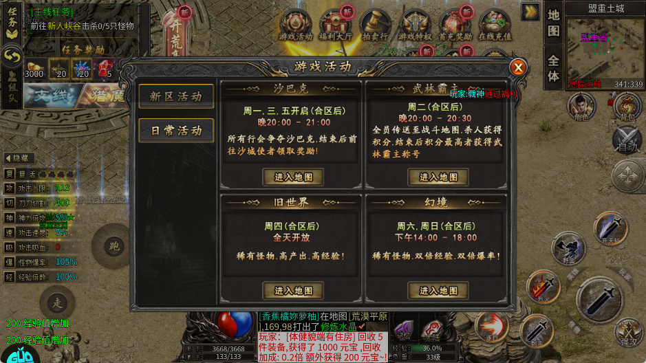 3、游戏内的签到和日常活动奖励非常丰厚,元宝、材料、装备碎片应有尽有,每天几分钟就能搞定,千万不要忽略,见下图:
