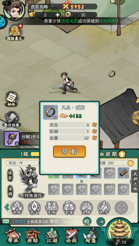 通过战斗玩家可以获取大量装备,穿戴装备可以提升玩家的战斗力