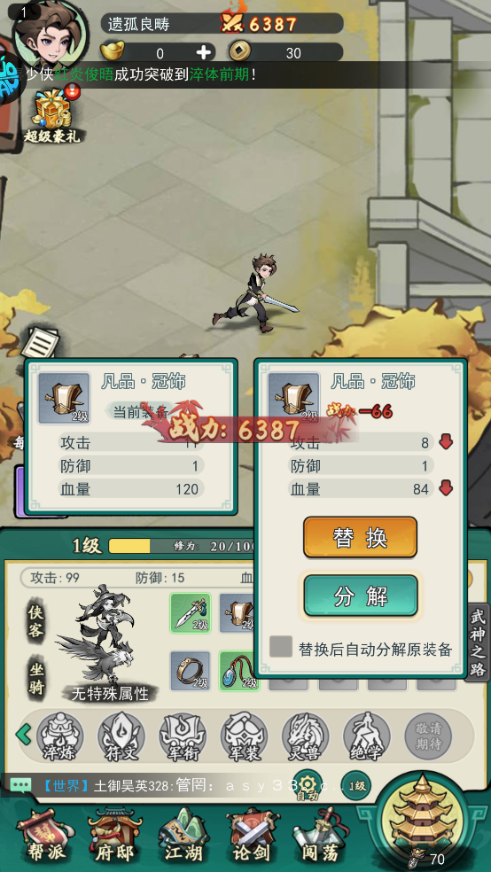 获得等级更高的装备时,可以直接分解掉低等级装备