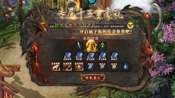 3.“摇钱树”惊喜系统:在大陆击杀怪物达到一定数量后,可触发抽奖,奖池包含充值积分等丰厚奖励,打怪过程充满期待。