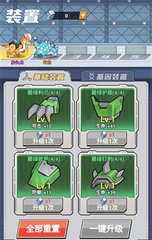 5、恐龙们还有特殊的装备装置可以升级提升,极大地增加其额外属性。
