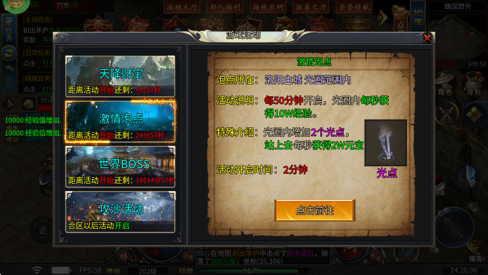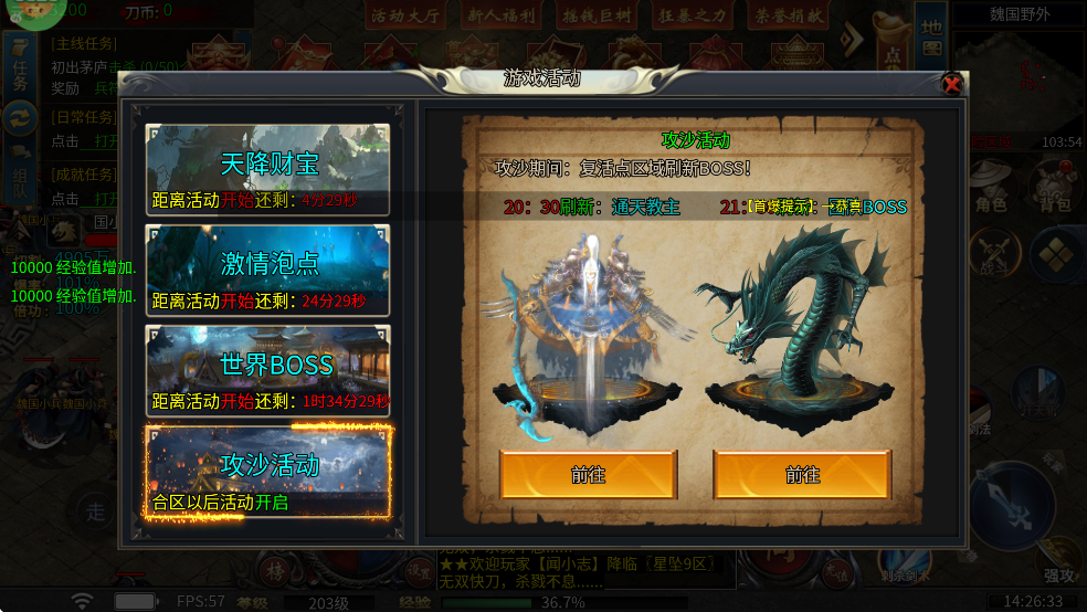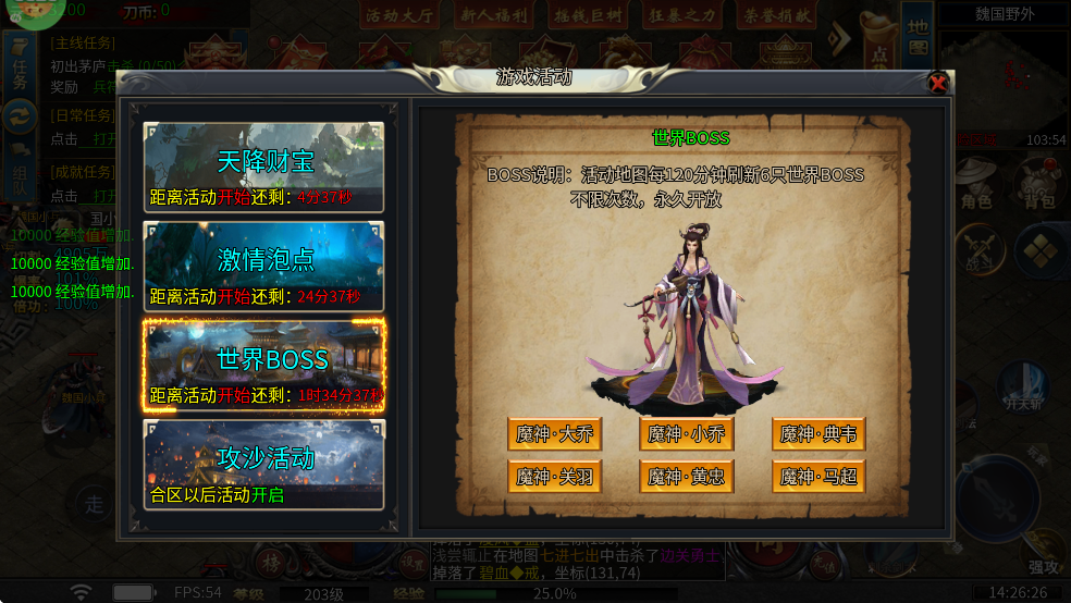 活动地图每120分钟刷新6只世界BOSS不限次数,永久开放