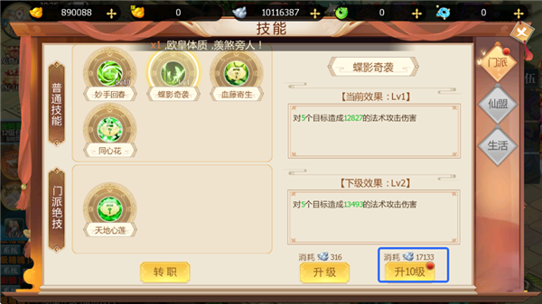 3、选择可升级技能,进行升级。