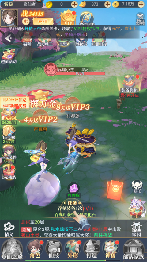 自由神兵锻造系统:采集天材地宝,炼制专属武器与法宝,支持淬炼、镶嵌、附魔,打造独一无二的战力核心。