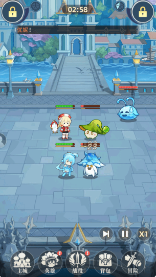 进入游戏中,画风非常的可爱,挂机战斗就完事了,如图: