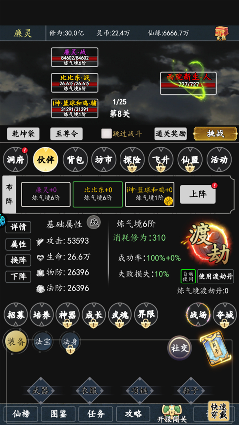 轻量化操作+离线成长:点击式交互,支持挂机修炼与离线收益,碎片时间轻松推进仙途。