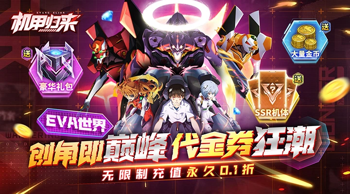 《机甲归来(0.1折天天送1W代金)》是一款融合美漫硬核美学与MMO挂机玩法的高福利机甲题材手游,以炫酷特效、热血战斗与轻松养成为核心体验。玩家将驾驶风格迥异的未来机甲,在废土都市与异星战场中对抗使徒、守护人类文明。游戏采用0.1折超低充值机制,充值648元仅需6.48元,更重磅的是——每日登录即送10000元代金券,可拆分使用于全商城消费,叠加最高10倍代金券膨胀福利,真正实现“氪金自由”。创角瞬间即可领取铸魂石、魔力、宝石、金币、强化石等豪华资源礼包,战力起步即领先。支持全自动挂机打怪、离线收益、一键扫荡,同时开放多人副本、世界BOSS、军团战等社交玩法,既能单人爽刷,也能组队并肩作战,畅享策略搭配与机甲养成的双重乐趣!
