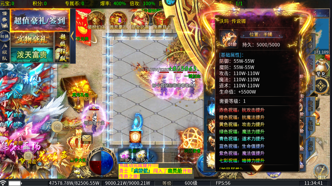 1、上线即可免费领取福利礼包(包含5*装备碎片、100万元宝、1万充值积分等)
