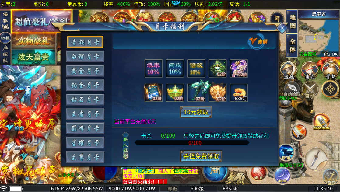 3、击败一定数量怪物即可免费领取月卡