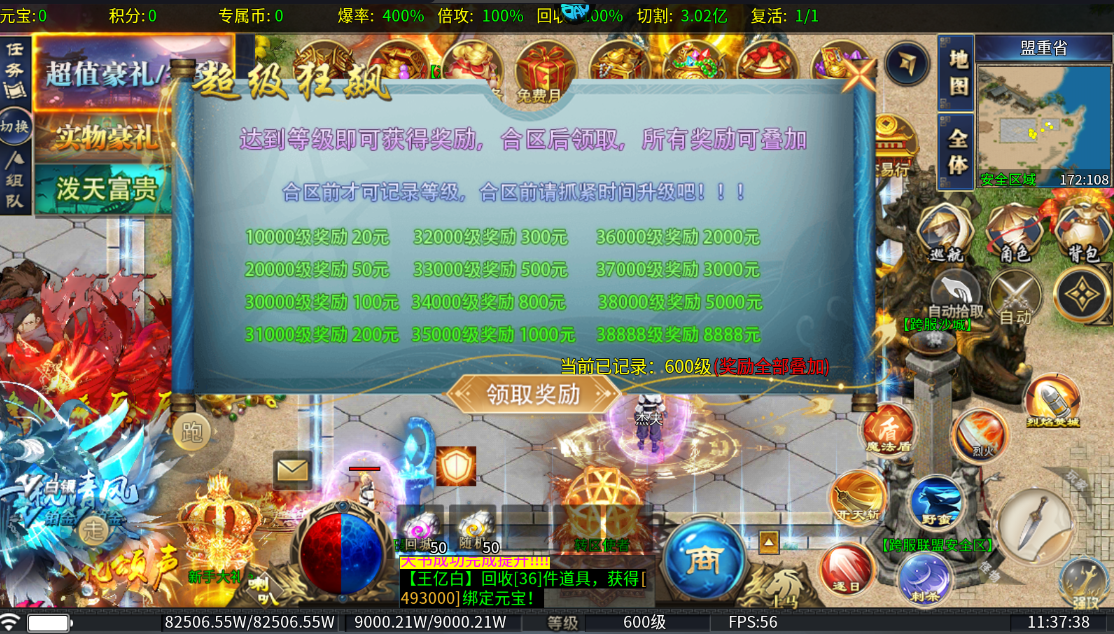 4.装备回收秒变提现:打到的任何装备都可一键回收,不仅获得海量经验元宝,更有机会获得真实兑换点券,真正实现“打金变现”。
