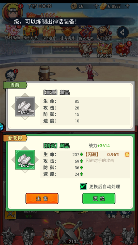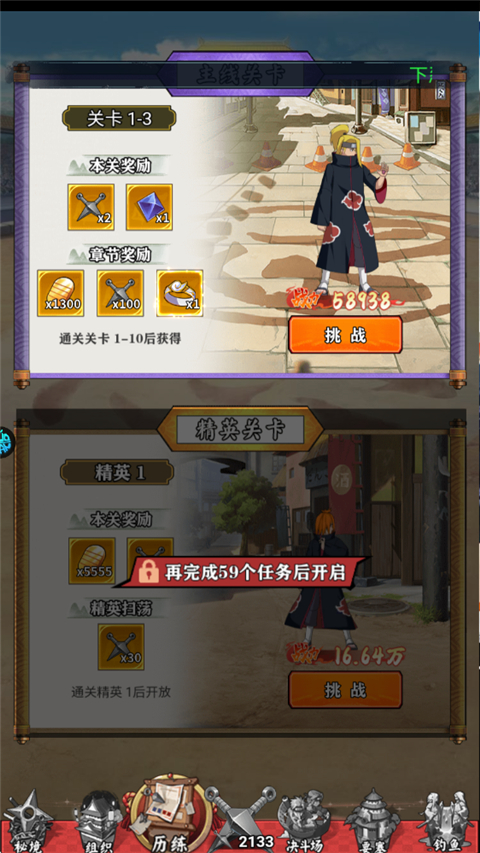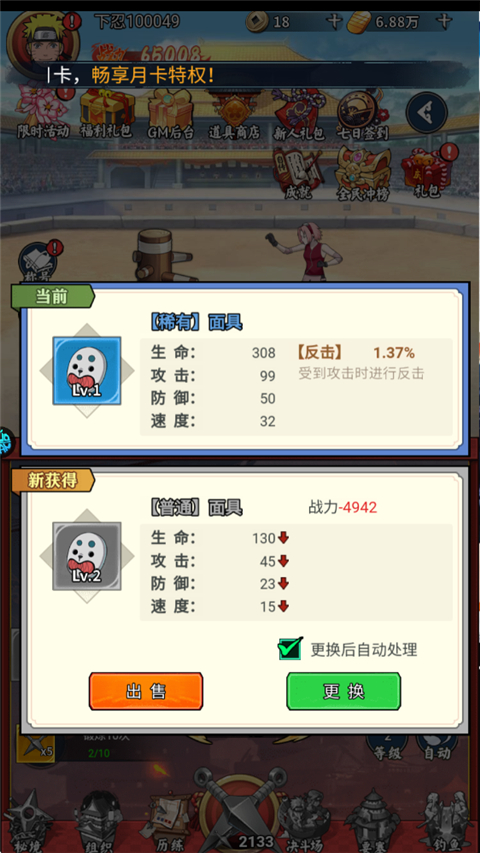 1.开局即巅峰:创建角色后,立即获得海量资源,包括64800金币和自选传说忍者,起步即是许多游戏的中后期体验。