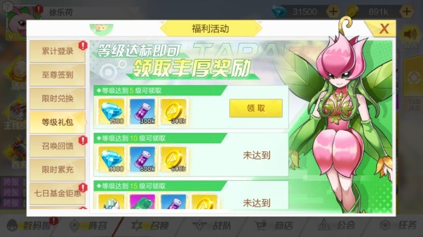 2、等级达标即可领取丰厚奖励