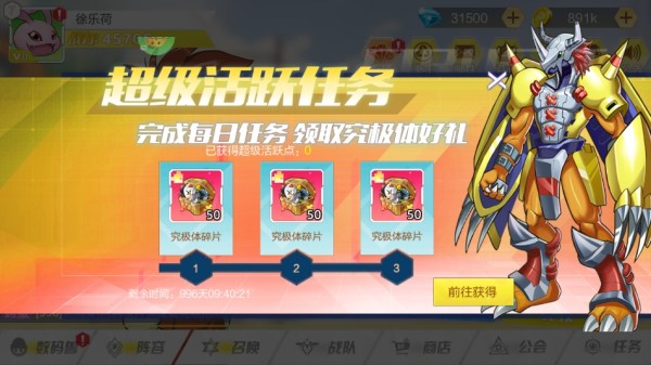 5、完成每日任务,领取究极体好礼