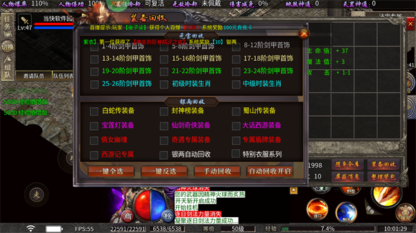 优先刷低阶地图积累基础装备,快速激活“自动回收”功能,将垃圾装备转化为灵符与元宝。