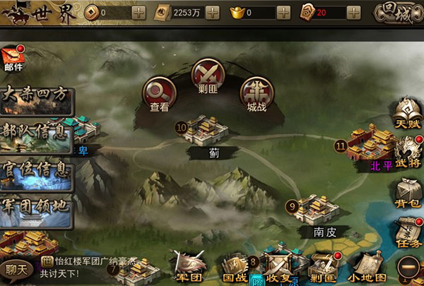 1.无论玩家是否加入军团,可随时往城池派兵。