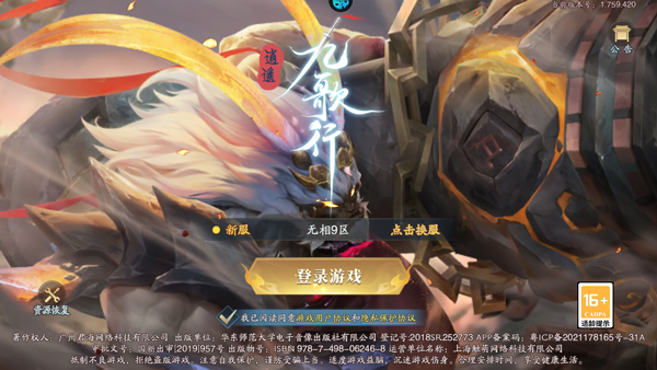 1、打开逍遥九歌行手游,手机号获取验证注册登录;