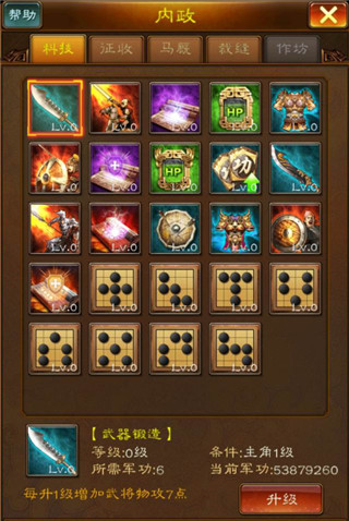 升级科技需要消耗军功;