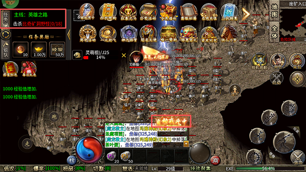 4、然后点击任务,就能看到你创建的角色在自动战斗和自动拾取金元宝啦,完全解放双手