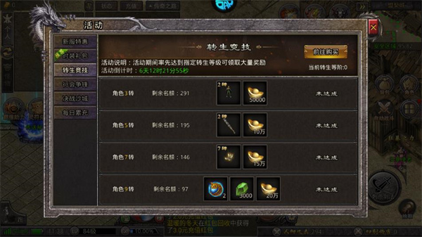 7、游戏内限时玩法一定要参与,所有活动都有充值红包和灵符产出,散人成长必备!