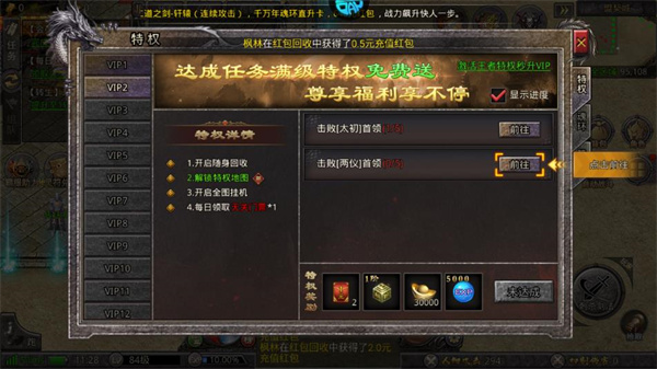 -VIP等级靠打怪提升,零氪也能满V,彻底告别强制付费。