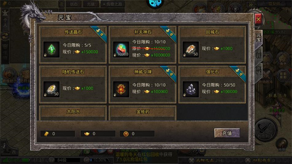 8、元宝商城和灵符商城每日限购尽量买完,每日都能提升不少实力!