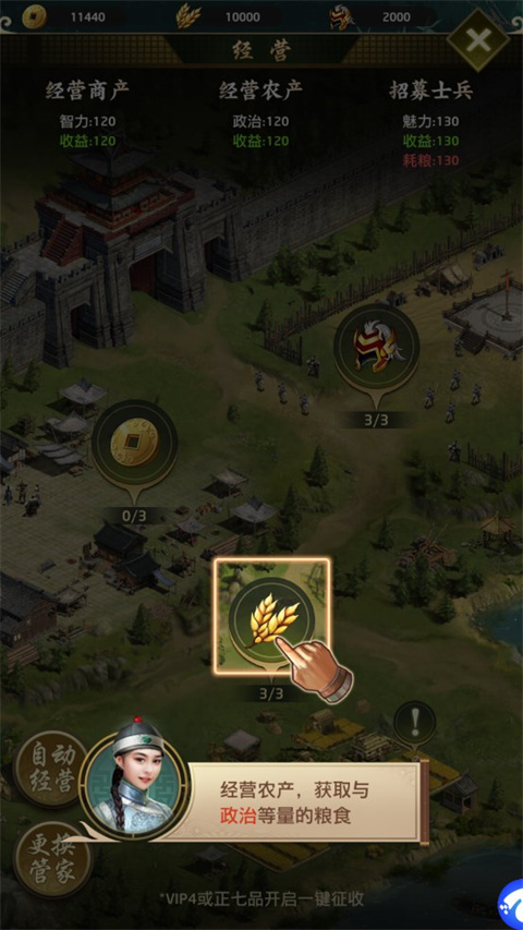 升级并精心管理农场,提升粮草产量,为大规模士兵招募提供稳定支持。